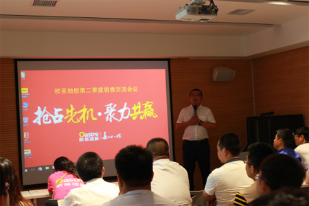為加大各地經銷商的交流,增加對產品的了解。歐圣地板于2016年6月9日、6月11日在西安召開了以“搶占先機、聚力共贏”的重點經銷商交流培訓會。歐圣地板營銷總監莊開峰等高層領導及來自全國各地的重點經銷商、精英導購等出席了此次大會。