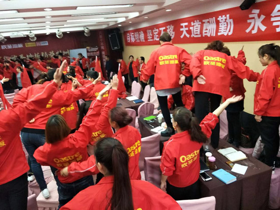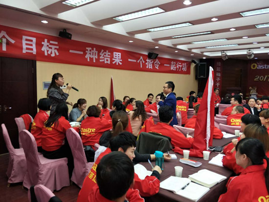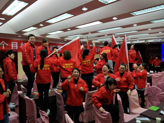 歐圣的團(tuán)隊(duì)是一支年輕、奮進(jìn)、不畏懼的團(tuán)隊(duì)。對(duì)于2017她們攜手前進(jìn)、意氣風(fēng)發(fā)。不拘謹(jǐn)、不羞澀向在場(chǎng)的領(lǐng)導(dǎo)戰(zhàn)友展示自己的風(fēng)采。