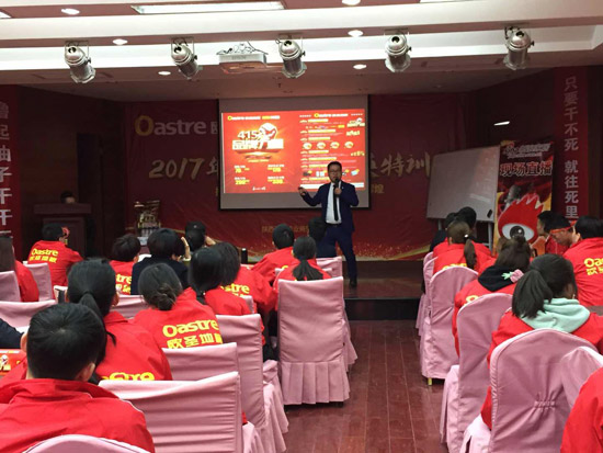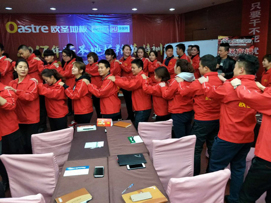 歐圣地板陜西營(yíng)銷中心副總朱奎香女士憑借著自己多年來在建材行業(yè)的銷售經(jīng)驗(yàn),以幽默詼諧的語(yǔ)言、強(qiáng)大的氣場(chǎng),讓在場(chǎng)的家人們深受感慨,將此次啟動(dòng)會(huì)演變成一場(chǎng)營(yíng)銷視覺聽覺會(huì)。