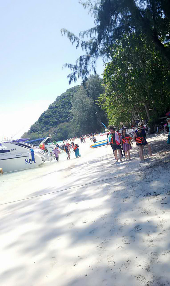清晨安靜的街道與夜晚相比少了幾分喧鬧,空氣也充滿了閑適和浪漫的氣氛,鳥兒在樹上自娛自樂地唱歌,貓兒在路旁打著盹兒。走在松軟的沙灘上,感受腳丫被細沙溫柔撫摸的感覺,有種說不出的舒服。循著烤面包的香味,吃一頓美味的早餐。酒足飯飽之后,便向傳說中的美麗海灘挺進——萊昂納多·迪卡普里奧主演的電影《海灘》就是在這里取景的,湛藍的海水和影片中一樣清澈,透過強烈陽光可以看見水底悠游的魚兒,這里正如絲毫不受塵世污染的世外桃源。大家紛紛舉起相機手機按下快門相互合影,任何一張照片都可以當風光明信片。
