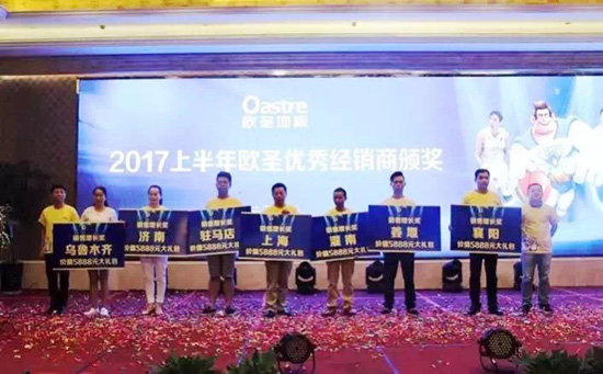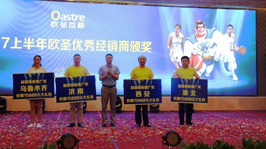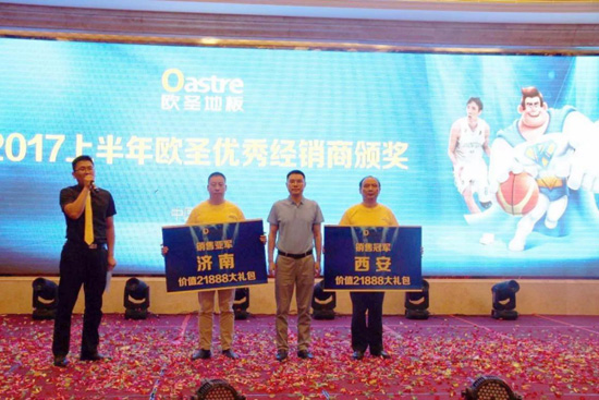 隨后,為感謝經(jīng)銷商們對歐圣木業(yè)所做的貢獻,特在此次“2017年歐圣超級地板重點經(jīng)銷商峰會”上設置了頒獎環(huán)節(jié)。眾多優(yōu)秀經(jīng)銷商代表上臺領獎。