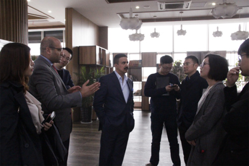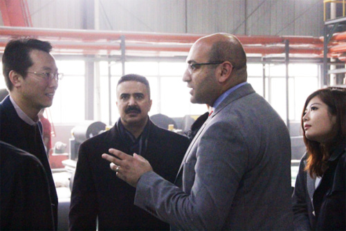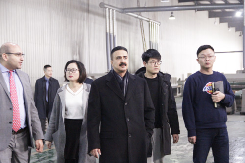 參觀過程中,阿吉蘭先生邊參觀邊向工作人員詳細詢問超級地板的相關情況,對歐圣的研發實力和具有的規模表示贊賞,并對歐圣超級地板在中東地區的推廣前景表達了強烈的信心。