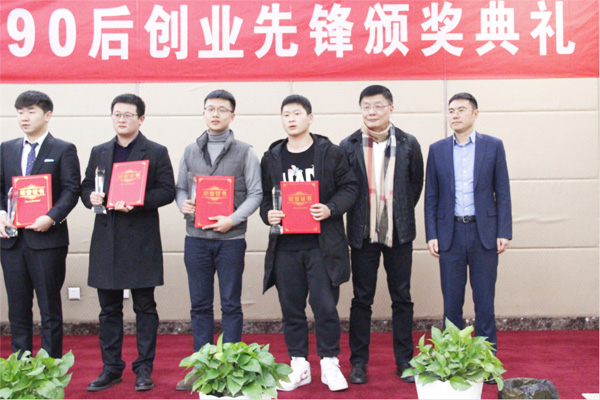 酈董事長為90后創(chuàng)業(yè)先鋒頒獎并合影留念