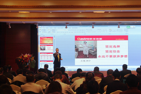 大會(huì)上銷(xiāo)售部總經(jīng)理岳成明指出,2015年是歐圣地板厚積薄發(fā)的一年,我們不僅要充分利用在實(shí)踐中積累總結(jié)的經(jīng)驗(yàn)資源,加快公司企業(yè)文化發(fā)展腳步,不僅是提高銷(xiāo)量,更是要打響高端品牌形象。