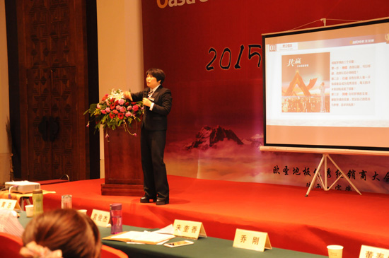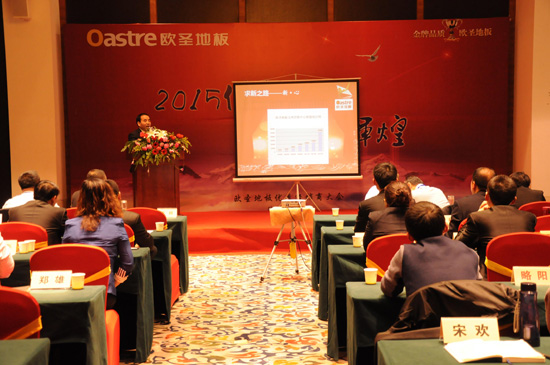 精彩的風采展示后,由總公司黃總及公司總經(jīng)理袁總對本次會議做了開場致辭,對2015年歐圣地板的發(fā)展趨勢進行了分析展望。