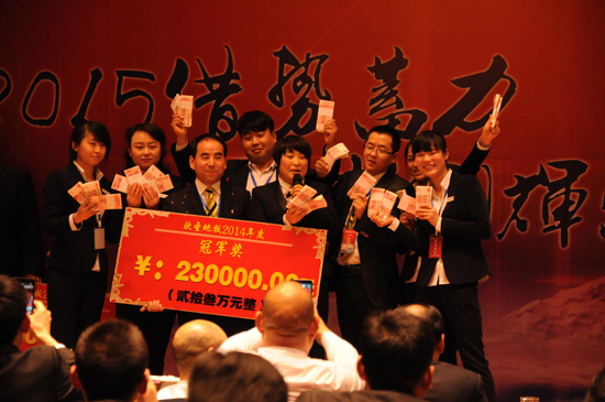 寶雞楊革新是陜西區(qū)域經(jīng)銷商的銷售之王,也因此選擇了寶雞作為本次經(jīng)銷商會議的地點,他的發(fā)言低調(diào)中透漏著自信,正如他所提及:生于安樂、死于憂患。2014年完成4萬㎡的楊革新,2015年張開臂膀挑戰(zhàn)公司10萬㎡。